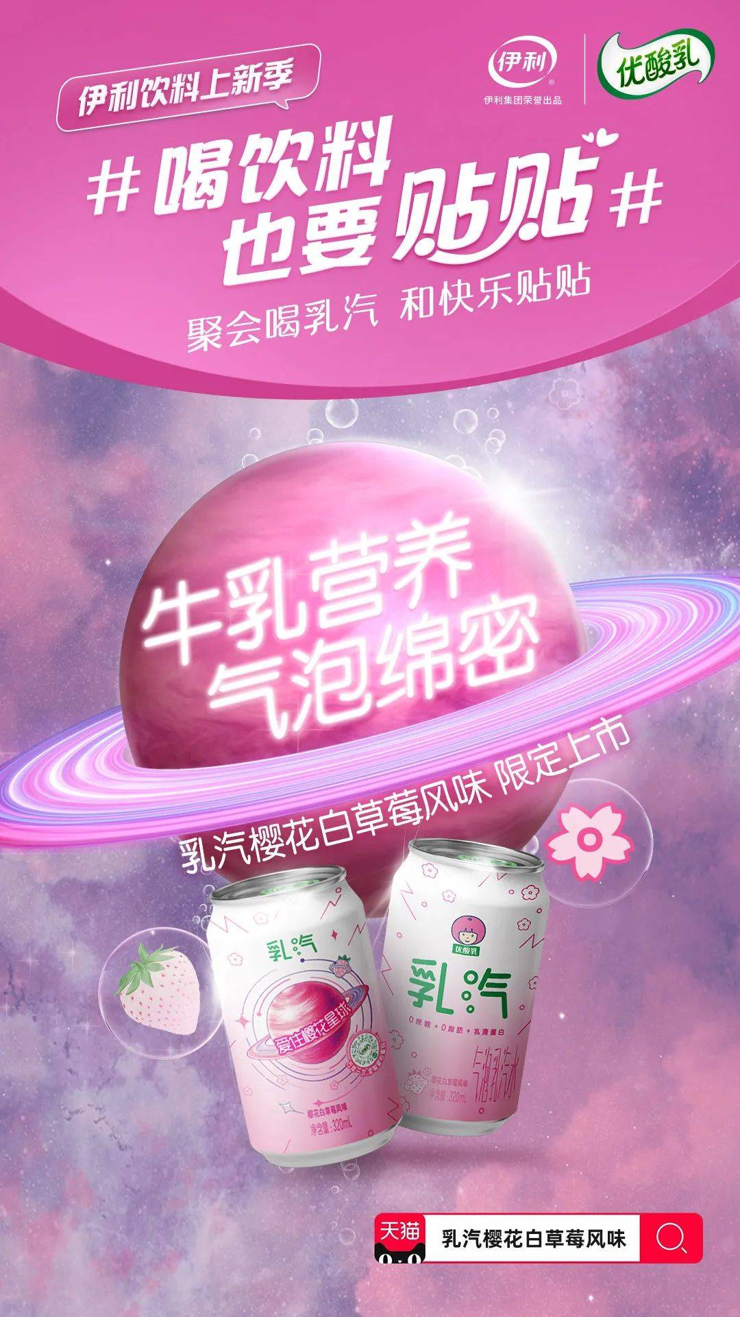 还有优酸乳打造的“樱花星球”系列包装以星球为灵感并融入渐变樱花粉色系浪漫甜蜜!