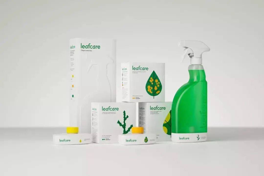 最后来看一款比较小众的产品——治疗植物疾病的药品 Leafcare,包装上用病变的树叶插图来表示治疗的植物病症,让消费者可以更直观的明白选购的款式。
