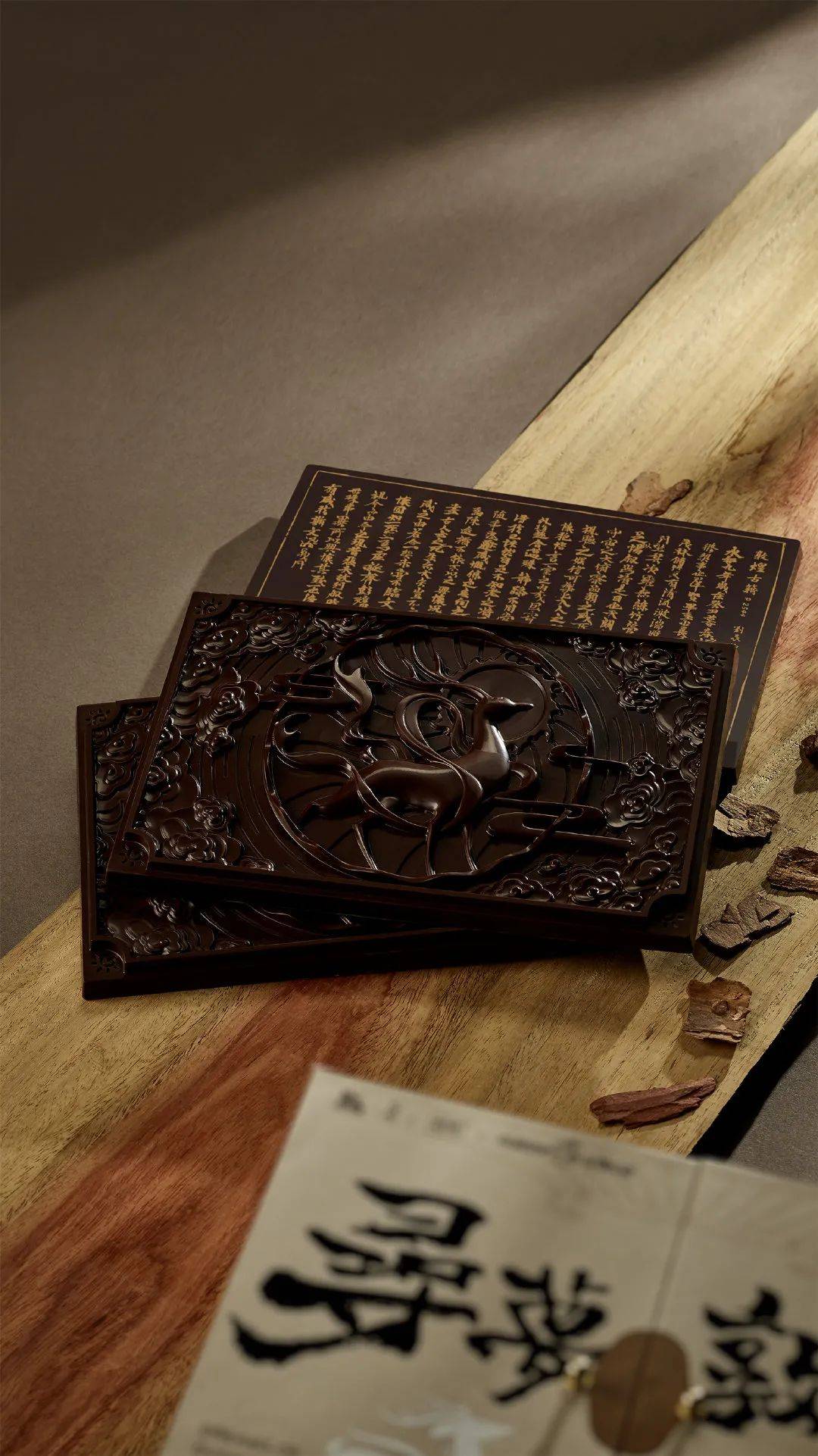 开启礼盒可看见盒内装着两块黑巧克力,大方块的设计,将其与壁画古籍进行联想,赋予产品强烈的仪式感和文化感。